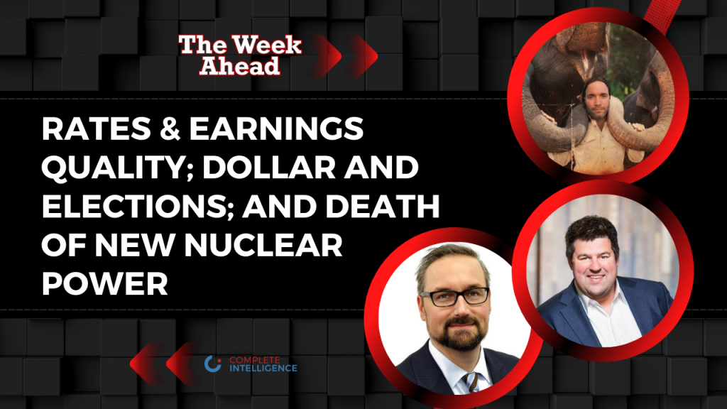 This Week Ahead episode is joined by Bob Elliott and Albert Marko. They discuss various topics such as Rates, market pricing & earnings quality, Dollar, commodities and elections and SMR: Death of nuclear power?